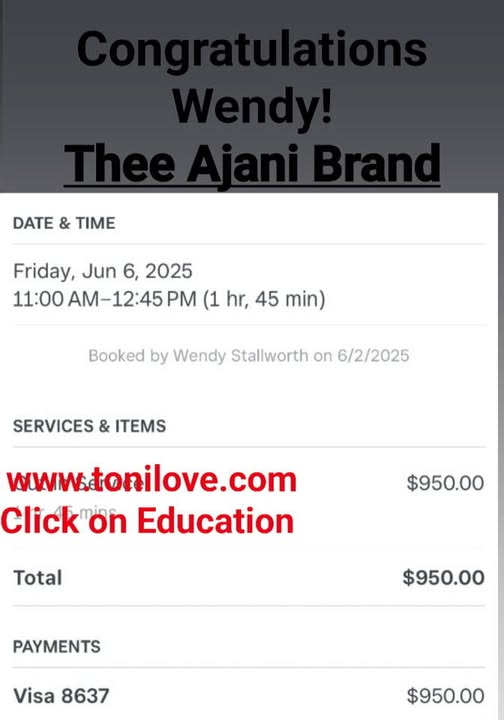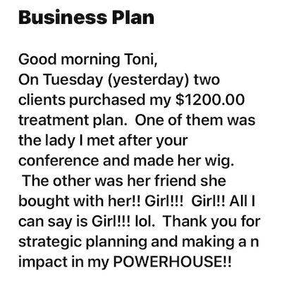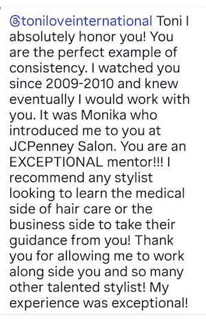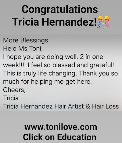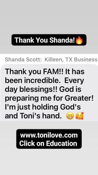 Hi Ms Toni I want you to know you’ve help transform my life and help me head towards getting from behind the chair!