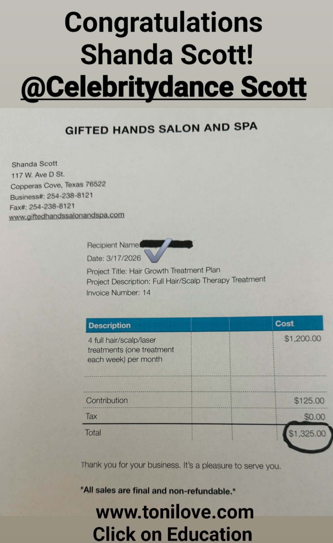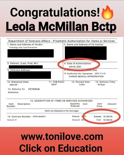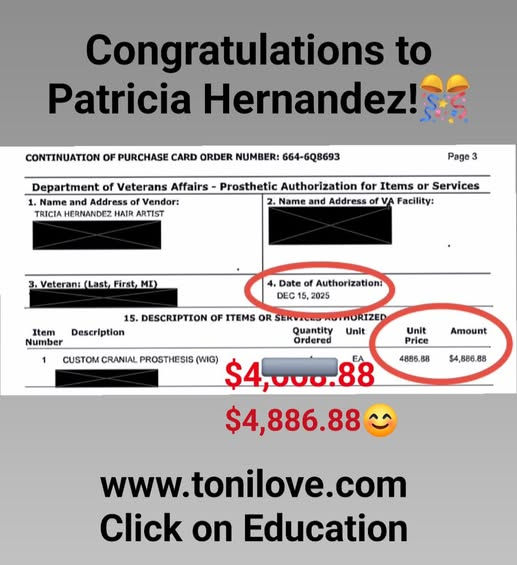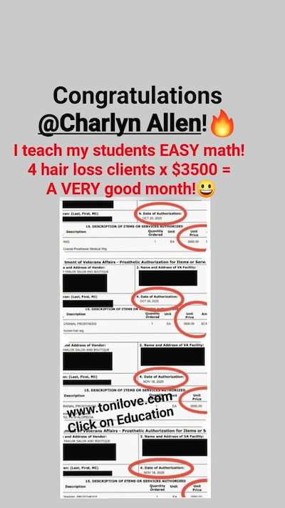 She received a VA payment a month of getting CERTIFIED in hair loss!! So proud of you! 😊