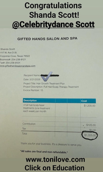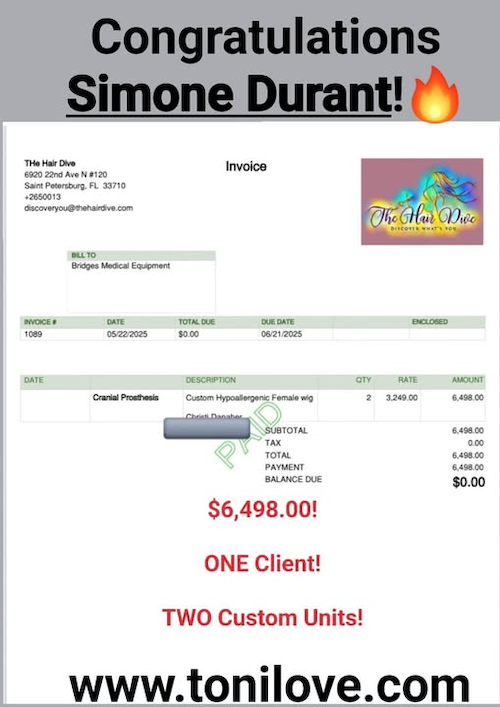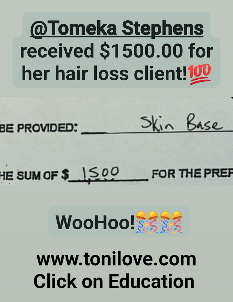 She received $2,649.99 for her hair loss client!!