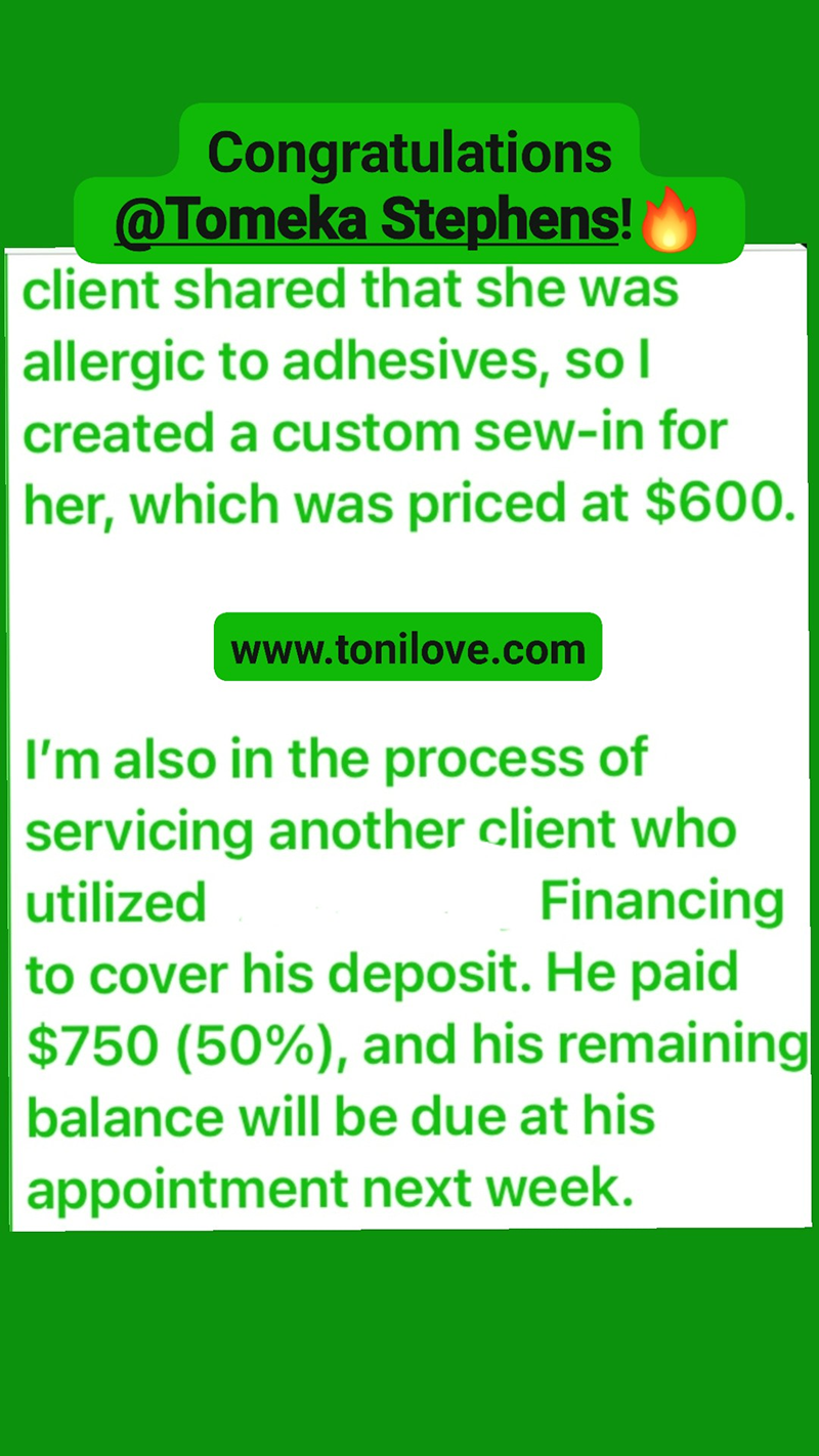 Graduate and Group Member Sharonda Bowman has been APPROVED to accept Care Credit payments n her hair loss center!
