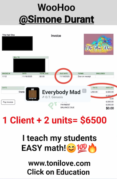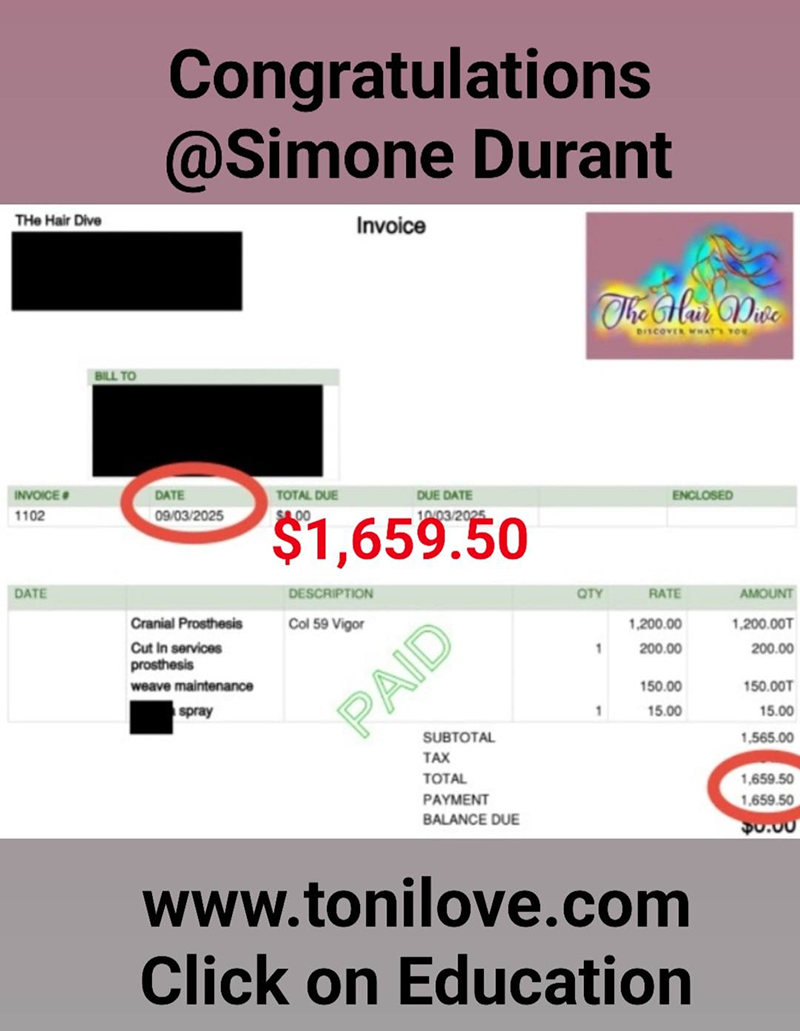 Graduate and Group Member Sharonda Bowman received $3,156.50 on May 8, 2019 for her hair loss client!