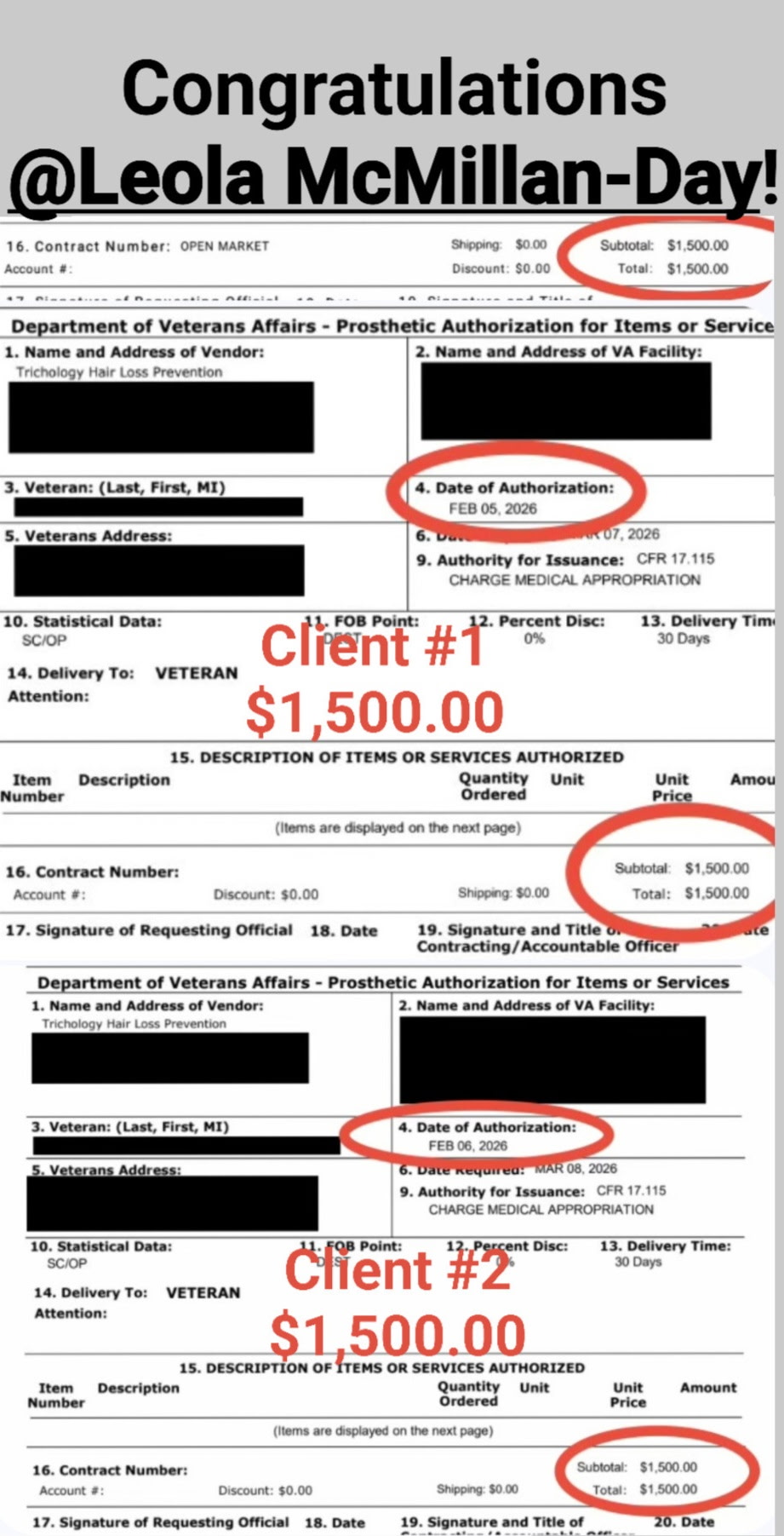 she received $1,649.00 for her FIRST VA clients!!!